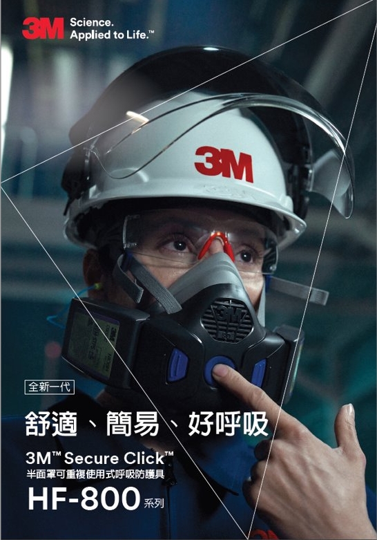 吸入有害等級的微粒、氣體和蒸氣可能對您的健康造成傷害。3M Secure Click 半面體可重複使用呼吸防護具 HF-800 系列在正確安裝並搭配經核准的 3M Secure Click 過濾棉和/或濾毒罐一起使用時,有助於減少接觸多種污染物。這款半面體空氣淨化呼吸防護具在正確安裝並搭配經核准的 3M 過濾棉和/或濾毒罐一起使用時,OSHA 指定防護係數 (APF) 為 10。本產品有助於在濃度高達 OSHA 允許暴露上限 (PEL) 10 倍的情況下提供呼吸防護效果。